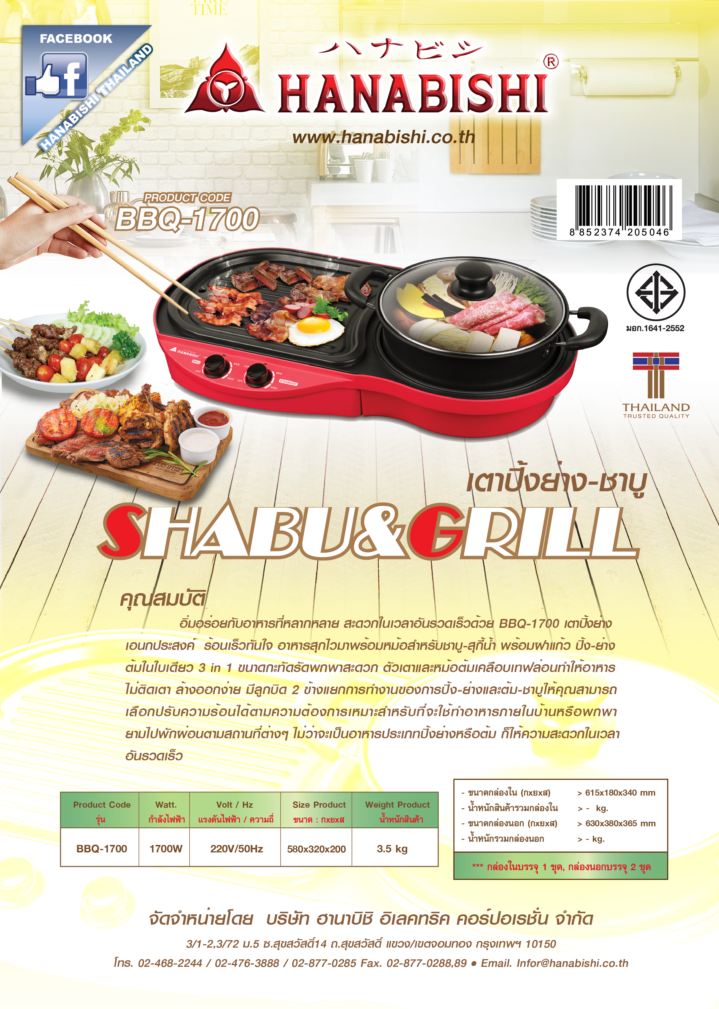 - ควบคุมการทำงานความร้อน 2 สวิตท์ แยกการทำงานของการปิ้ง-ย่างและต้ม-ชาบู