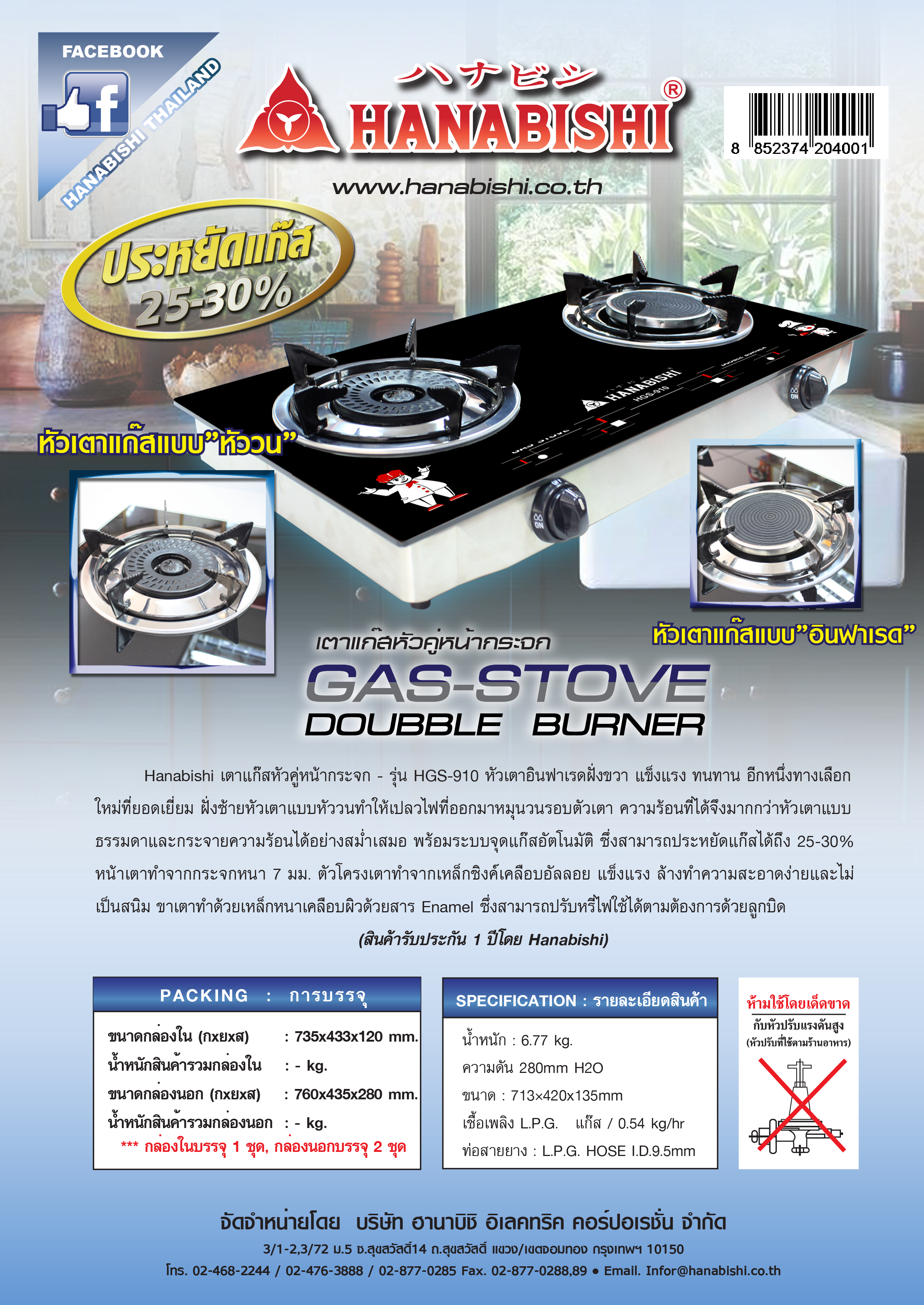 - หน้าเตาทำจากกระจกหนา 7 mm.