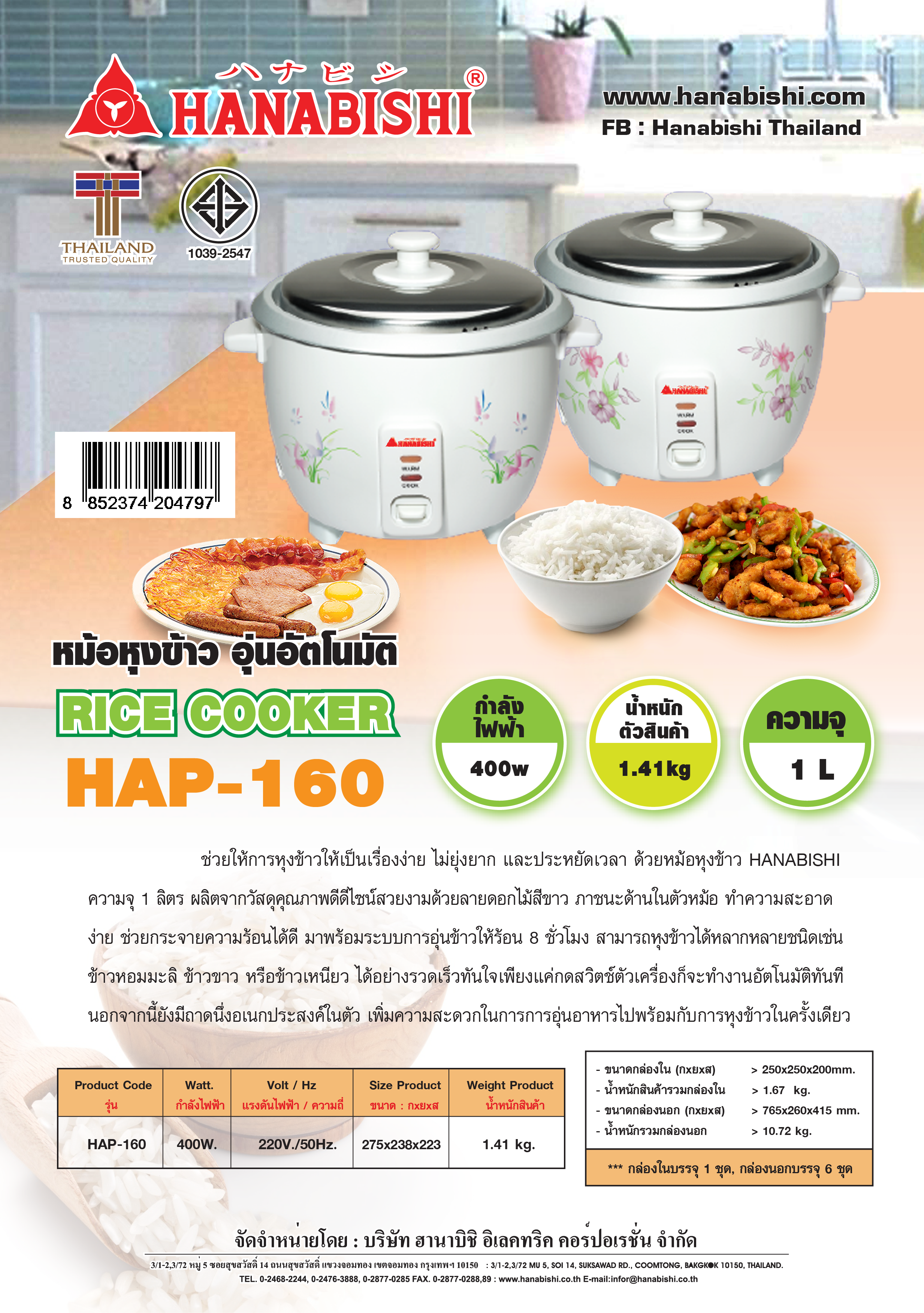อุปกรณ์เสริมภายในกล่อง : ทัพพีตักข้าว,ถ้วยตวงข้าว,ใบรับประกัน,คู่มือการใช้งาน