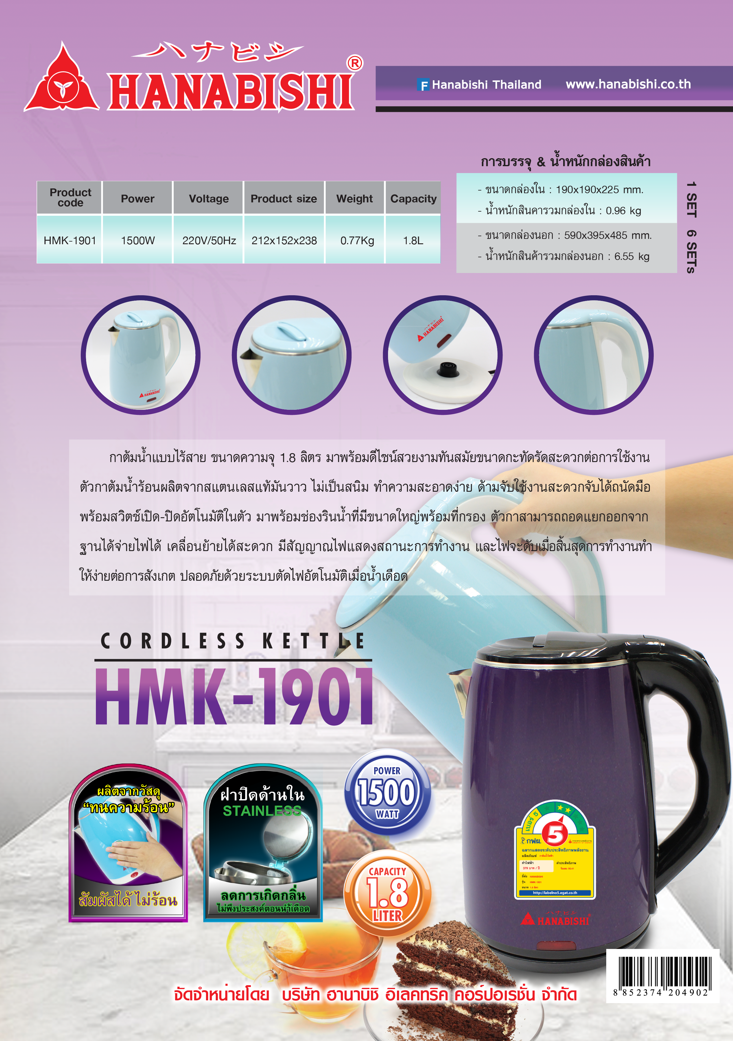 - ระบบตัดไฟอัตโนมัติเมื่อน้ำเดือด