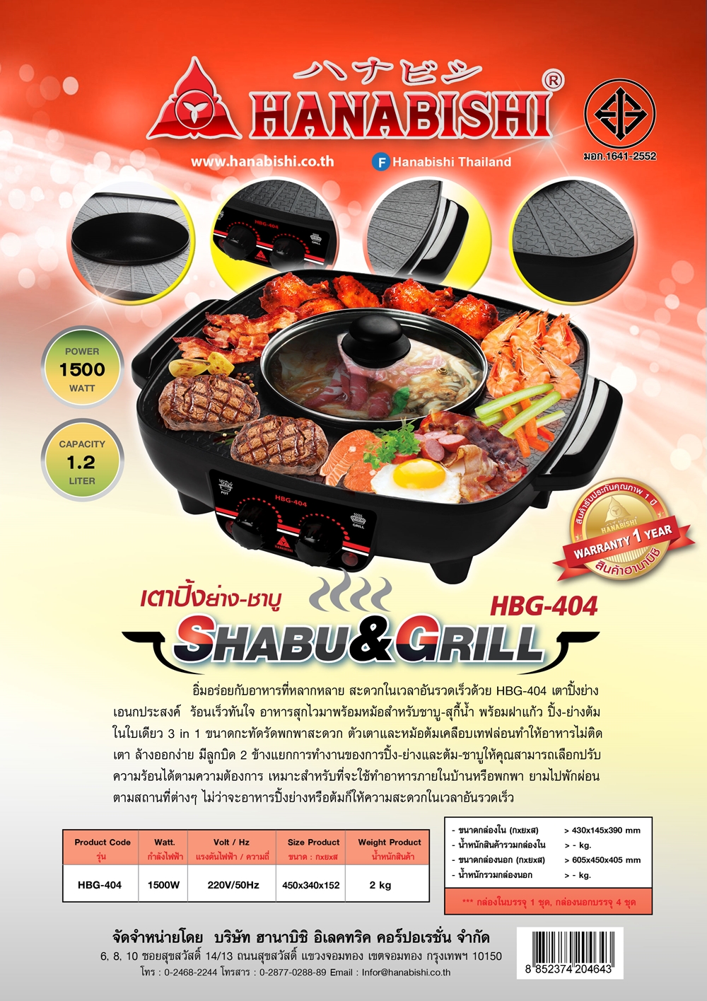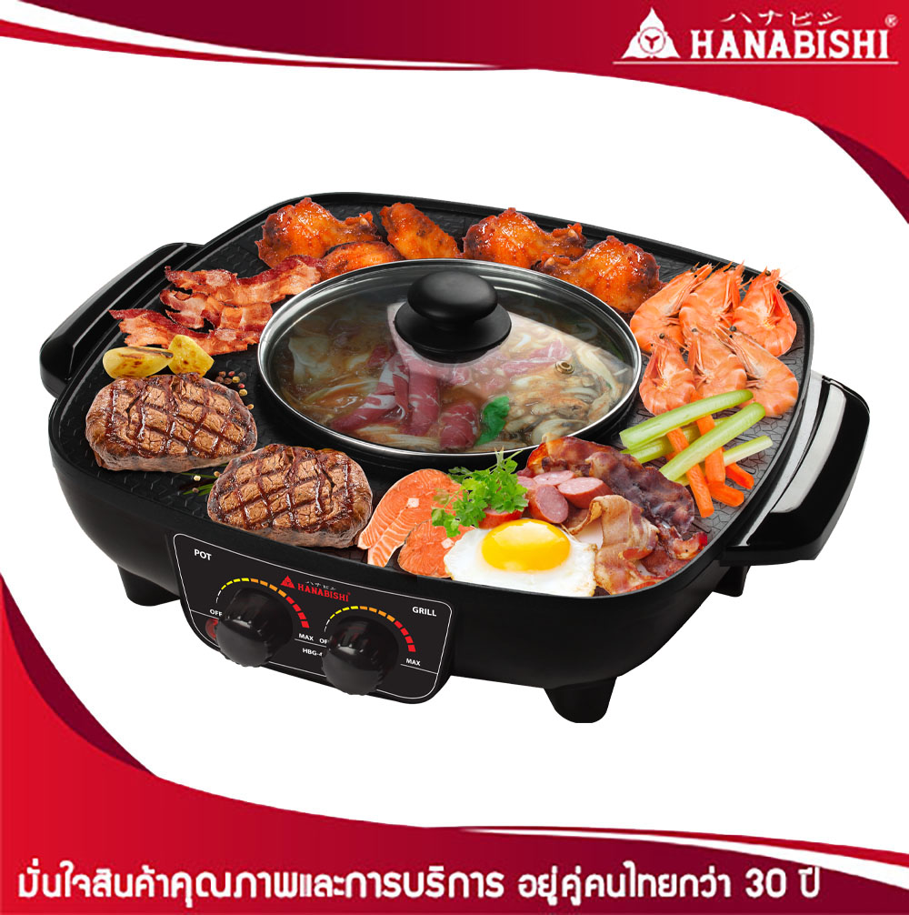 - ควบคุมการทำงานความร้อน 2 สวิตท์ แยกการทำงานของการปิ้ง-ย่างและต้ม-ชาบู