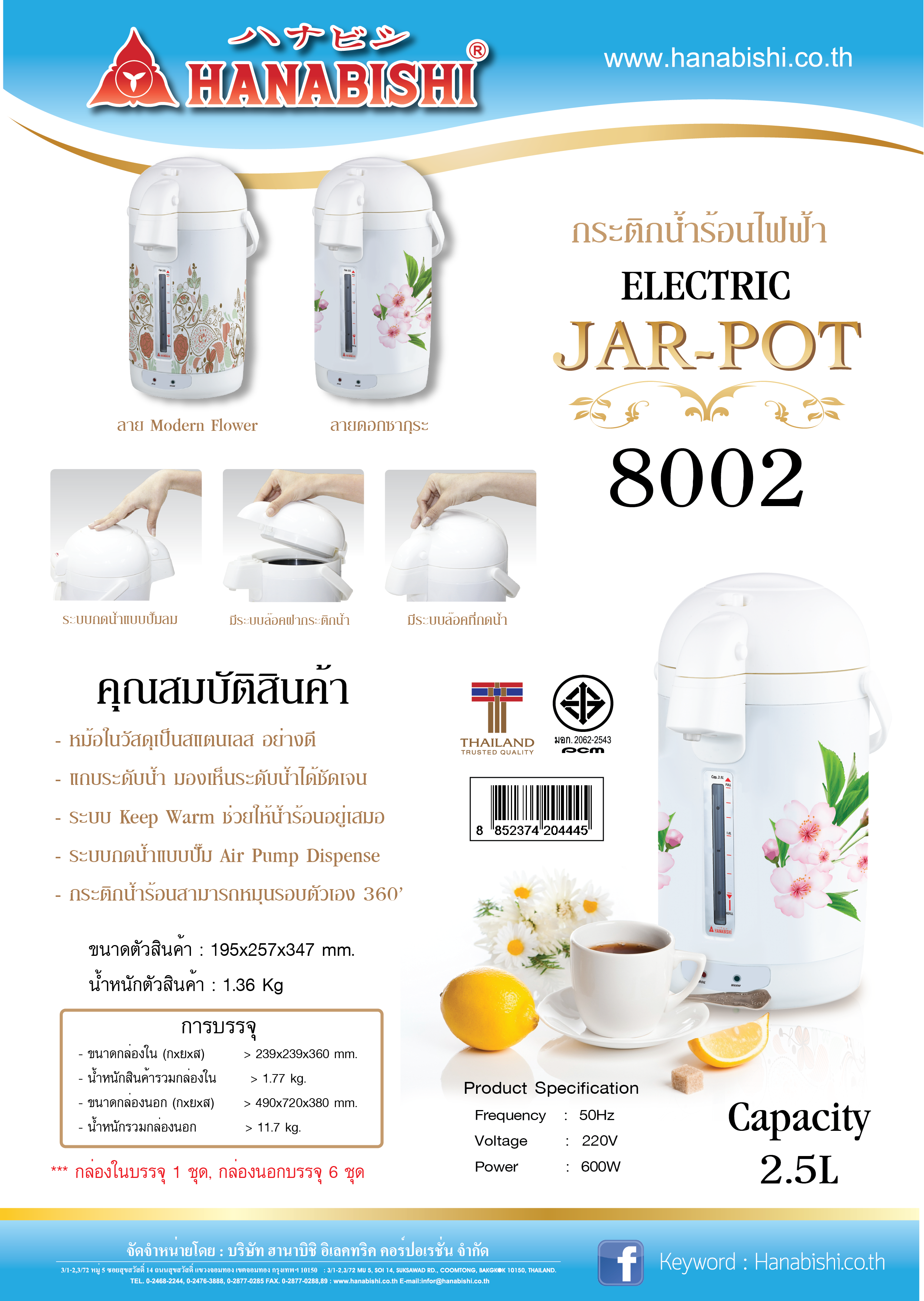 - กระติกน้ำร้อนสามารถหมุนรอบตัวเอง 360 องศา