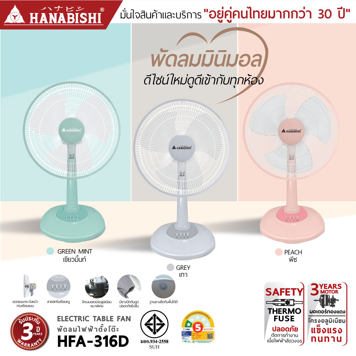 ระยะเวลารับประกันของสินค้า (Warranty) : 3 ปี
